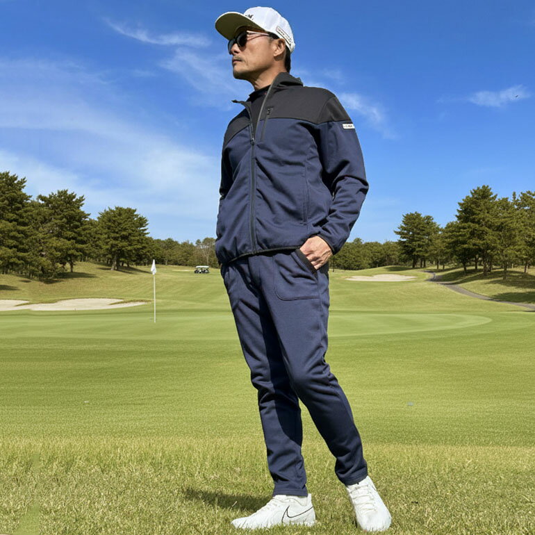 ゴルフウェア メンズ セットアップ 冬 パンツ ジャケット 防寒 暖か 秋 防風 ボトム トップス フルジップ スポーツウェア アウター おしゃれ3層構造で寒風をシャットアウト裏フリース防風ゴルフセットアップ(CG-SET024)