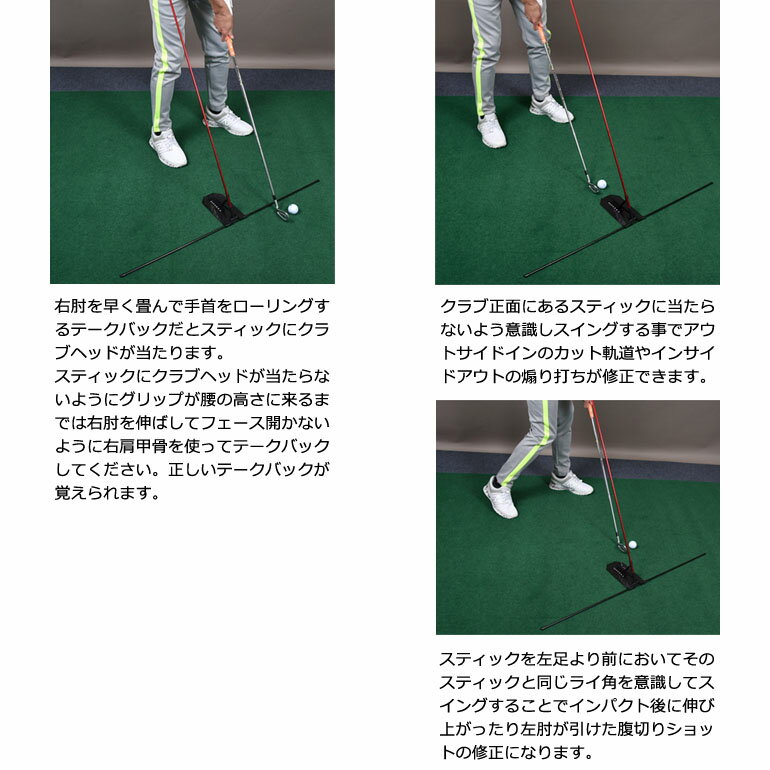 ▼関連キーワードゴルフ 練習器具 フェースチェック フェースの向きテイクバック テークバック バックスイング フェース小物 グッズ 景品 golf正しいスイングプレーンが作れるパーフェクトスイングプレーントレーナー Santareet Select PGAの選手は必ず練習に使っています。 前傾角度を保ってスイングする事を意識をさせてくれるスイングトレーナーです。正しいクラブ軌道が身に付きます。 飛んで、曲がらない「オンプレーン」体得に最高なグッズです。 オンプレーンなら飛んで曲がらない。これは練習になりますよ!!アマチュアの多くがインパクト時にお尻が前に突き出して伸びあがるスイングが多いといわれています。その場合インパクト時にグリップがスティックに当たってしまうので当たらないようにスイング修正が出来ます。また、カット打ちの場合はインパクトの瞬間にスティックにクラブが当たってしまうので同じく修正に役立ちます。練習場でボールを打たなくても素振りをするだけでも十分に上達に繋がります!。 ※使用前には必ず商品の安全点検、並びに使用場所周辺の安全確認を行ってください。※商品の仕様上若干のキズ・汚れが見られる場合がありますが不良ではございません。品質に問題はございませんので予めご了承ください。素材スティック:アルミ合金 / 土台用スティック:ニッケル合金 / 土台部:プラスチック サイズ(cm)HWD重量説明書使用時10210021620gなしスティック土台 H土台 W組立前24.5×6本2111 ★レビュー投稿で500円クーポンプレゼント! ご購入頂いた商品について皆様の声をお聞かせくださいませ。今後の品備え、ショップ作りの参考にさせていただきます!