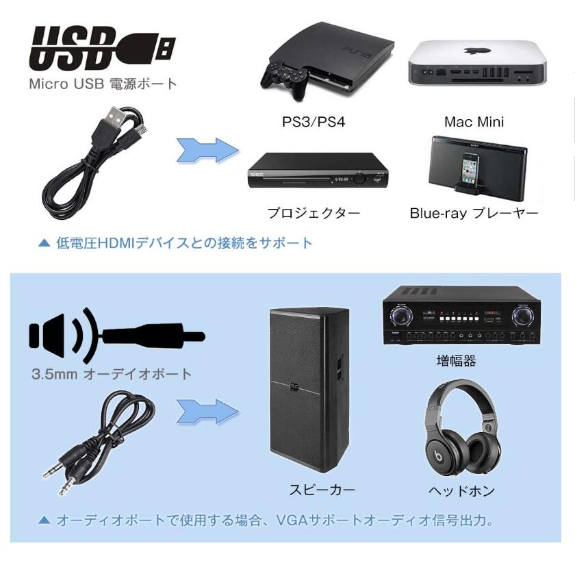 【VGA-HDMIアダプター/コンバーター】VGA出力を備えた古いコンピューター/ラップトップを簡単に接続します。ビデオストリーミング、ゲームの再生、コンテンツの共有のためのHDMI入力を備えたテレビ、モニター、プロジェクターに接続できます。 【ビデオとオーディオを同時にサポート】最大1080p(1920 x 1080 / 60Hz)までのフルHDビデオ解像度、24ビットをサポートし、3.5mmオスAUXミニジャックからステレオオーディオを送信します。 【プラグ&プレイ】VGA-HDMI内蔵チップセットに電力を供給するには、USBコネクタを接続する必要があります。Windows7/8/10、Linux OSと互換性あります。 【▲VGA→HDMI変換のみ】VGAからHDMIにのみ変換します「○」。HDMI→VGA変換ケーブルとしては使用できません「✖」。 【3.5mm音声ケーブルと USBケーブルを付き】3.5mmミニジャックオーディオケーブルとマイクロUSBケーブル。