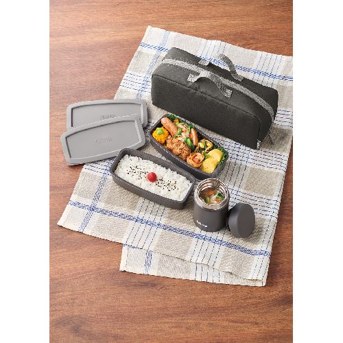 ■断熱構造の専用ポーチ(洗濯機OK)付き■ごはんやおかずは常温で、スープジャーは温かいスープや冷たいデザートOK!JEH1000BKGY容量(ml):200 容器:0.4L×2個口径(mm):49保温保冷効力:保温効力:(ポーチなし)55℃以上(6時間)(ポーチあり)58℃以上(6時間)/ 保冷効力:(ポーチなし)12℃以下(6時間)(ポーチあり)12℃以下(6時間)材料:【スープジャー】本体:ステンレス鋼(アクリル樹脂塗装)/ フタ:ポリプロピレン(発泡ポリプロピレン内蔵)/ パッキン:シリコーンゴム / 【容器】本体・フタ・仕切り:ポリプロピレン / フタパッキン:シリコーンゴム 【ポーチ】外生地・内生地:ポリエステル / クッション(断熱材):発泡ポリエチレン全パーツ食洗機対応にリニューアル!