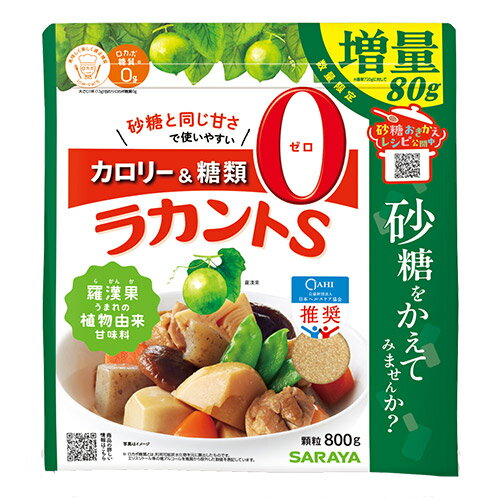 トウモロコシの発酵から得られる天然甘味成分「エリスリトール」と、砂糖の300倍の甘さを持つ「羅漢果(ラカンカ)」の高純度エキスを使用。バランスよく配合することによって、砂糖の甘味度(甘さ)に近づける工夫を行っています。【製品特長】・面倒な換算がいらず、砂糖と同量に置き換えて使うことができますので普段のお料理にも最適です。・煮物などのお料理やお菓子作りやコーヒー・紅茶など、いろんな用途に大活躍する顆粒タイプです。・ほんのりナチュラルブラウン色です。・黒砂糖にも似た味で、加熱しても甘味は変わりません。・煮る、炊く、焼くなど、どんなお料理にもよく合います。■商品詳細メーカー名:サラヤシリーズ名:ラカント内容量:800g×3袋購入単位:1セット(3袋)配送種別:在庫品◆原材料/エリストリール、ラカンカエキス/甘味料(ラカンカ抽出物)※リニューアルに伴いパッケージや商品名等が予告なく変更される場合がございますが、予めご了承ください。※モニターの発色具合により色合いが異なる場合がございます。【検索用キーワード】4973512282942 FP5938 サラヤ ラカントS 顆粒 SARAYA saraya さらや らかんと ラカント 甘味料 かんみりょう エリスリトール 調味料 ちょうみりょう カロリーゼロ 糖質ゼロ ダイエット甘味料 砂糖摂取制限 砂糖制限 カロリーオフ 糖類ゼロ お菓子作り 製菓づくり 料理 コーヒーシロップ シュガー コーヒーシュガー 砂糖未使用 砂糖不使用 健康志向 健康 ラカントs 800g 健康志向食品 ラカント800g 増量 ラカント増量 増量タイプ ラカント増量品 720g+80g増量品 増量品 +80g 80g増量 80g増量品 3袋