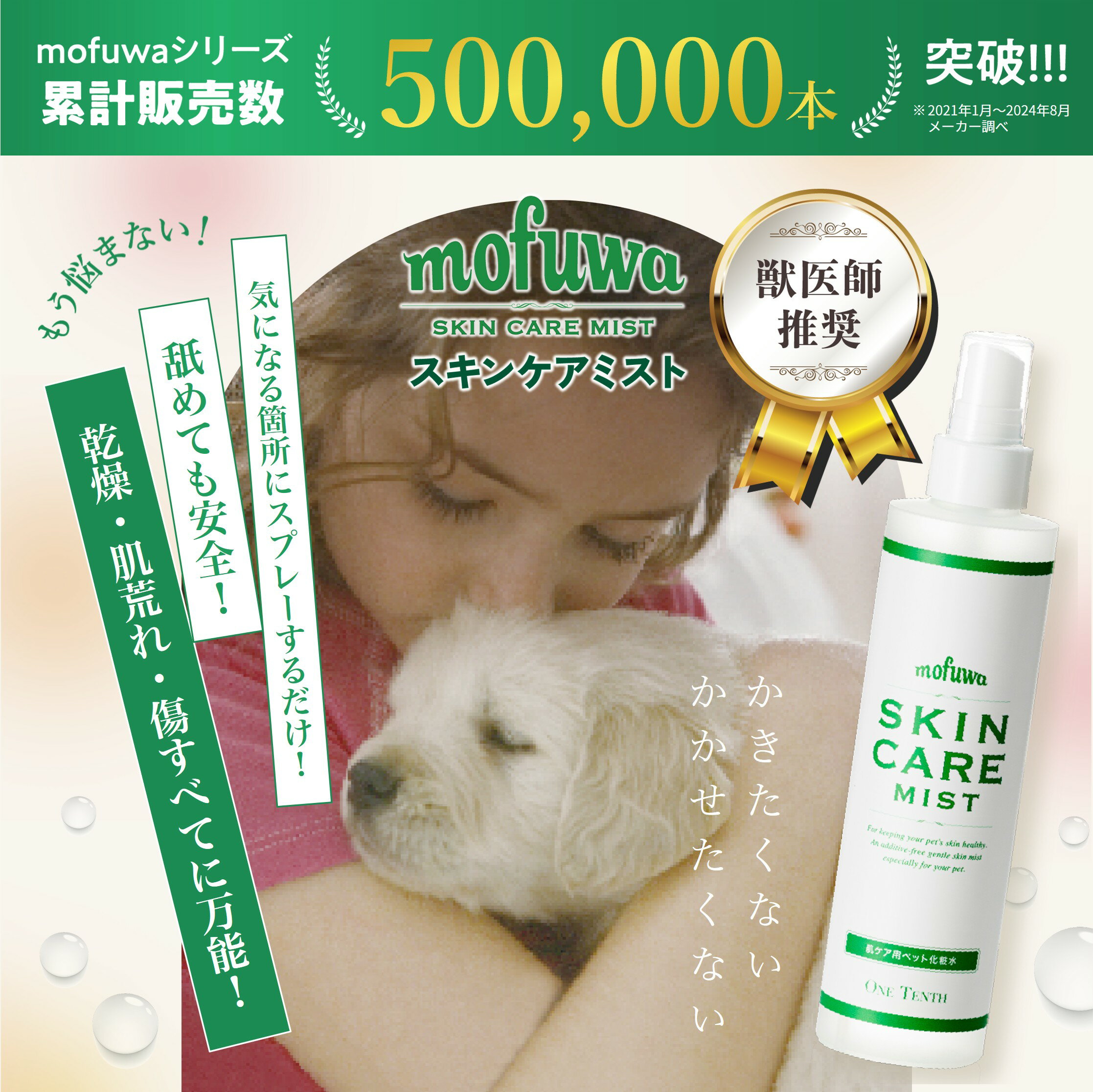 【公式】mofuwa スキンケアミスト スプレー 涙やけ 痒み かゆみ カイカイ フケる 目やけ 耳ダレ 保湿 犬 猫 ペット 消臭 対策 ニオイ 無香料 アルコールフリー モフワ もふわ