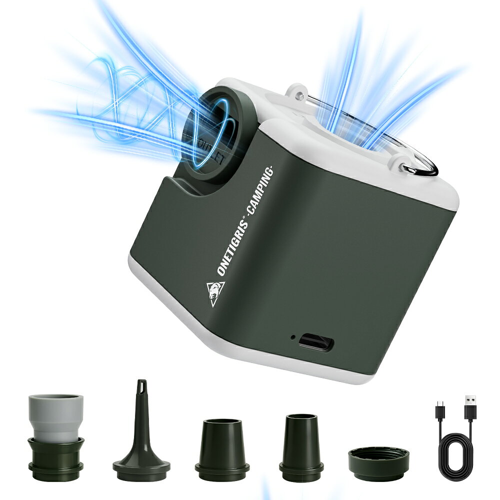 ★12月1日まで★3,280円→2,624円★送料無料 OneTigris ECOARK 電動エアーポンプ LEDライト付き 電動ポンプ エアーポンプ 2400mAh USB充電 5種類のノズル付き ミニポンプ 超軽量 ポンプ 携帯 浮き輪 コンパクト 空気入れ 空気抜き 圧縮袋 充電式 アウトドア