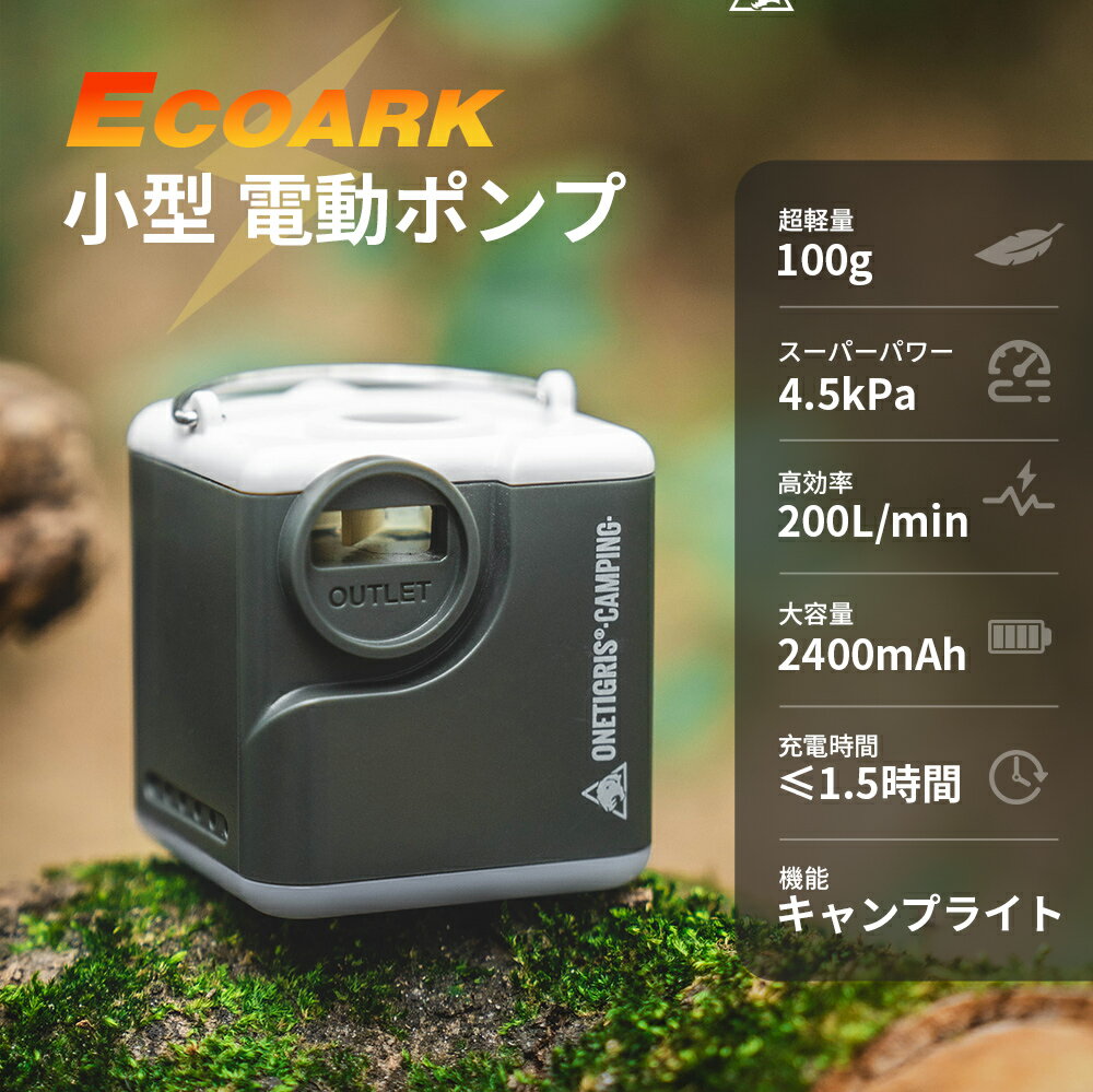 注意事項-弊店は環境保護の為、すべての商品は大量の梱包材や緩衝材やダンボールなど梱包されていません。ご理解の程宜しくお願い致します。 輸送中の破損等があった場合は、返送料・手数料当社負担にて、返品・返金・交換にて対応させていただきます。ぜひご安心にしてくださいませ。 -個人輸入される商品は、すべてご注文者自身の「個人使用・個人消費」が前提となりますので、ご注文された商品を第三者へ譲渡・転売することは法律で禁止されております。重要※使用できない場合はカスタマーサービスまでご連絡ください! ※このポンプはDREAMSTAR、DYNISLAND、LIGHTDREAMインフレータブルマットには適していませんので、ご注意ください。素材合成樹脂、ナイロン製、リチウムバッテリー重量約100gサイズ(約)幅4.6cm×奥行き4.6cm×高さ5.1cmセット内容エアーポンプ*1 ノズル*5 充電用USBケーブル(Type-C)*1 取扱説明書*1 収納袋*1吹出量200L/分バッテリー容量2,400mAh充電時間(約)≦1.5時間 ※フル充電時のエアーポンプ使用可能時間めやす≧18分空気圧≧4.5Kpa備考※バスケットボール、SUPなど高い空気圧が必要とされる製品にはお使いいただけません。 ※車中など高温になる場所への放置は破裂、発火の恐れがありますので、絶対にしないでください。 ※本体が高温になる環境下(例:車中、直射日光、火の近くなど)での使用、充電はしないでください。 ※商品は、モニターによって色合いが異なって見える場合があります。 ※仕様・デザインは改良のため予告なく変更することがあります。OneTigris ECOARK ハイパワー 電動エアーポンプOneTigris タイニー電動ポンプはボタン1つで、2回押すとスイッチオン、1回押すとスイッチオフ、シンプルで素早い操作。サイズの異なる5つのノズルを装備、エアーマット、エアーソファ、浮き輪、圧縮袋などに対応できます。 空気を正しく送り込み、空気漏れの心配がありません。キャンプ、アウトドアでリラックス、自宅での遊びなど、どのような場面でも使用できます。 ※このポンプはDREAMSTAR、DYNISLAND インフレータブルマットには適していませんので、ご注意ください。【小さいポンプ・大きいパワー】携帯用ミニ電動ポンプとして、圧力は4.5kPaに達し、流量は200L/min、主にインフレータブル製品用に設計、197 * 65 * 10センチのエアマットは1分以内に膨らませることができます。 従来の円柱形ポンプとは異なり、スクエア構造を採用、内部の空気室の循環がより効率的で優れたものとなり、膨張効率を30%高めます。 すぐに膨張し、収縮し、エアーマットや浮き輪などを膨らます時に大活躍。キャンプライト機能付き、ポンプ機能が不要なときに、無駄にスタンバイではない。 膨らませ終わった後は、ナイトライトとしても使えます。長押しで点灯、長押しで消灯、1回押しで明るさを切り替えられます。 明るさは3段階に調節でき、High-250lm(5時間照明可能)、Mid-50lm(13時間照明可能)、Low-25lm(25時間照明可能)、上部には吊り下げフックが付き、吊るして置くことができ、便利です。多機能で、利用率を向上させます。【USB充電式ポンプ・2400mAh大容量】2400mAhの大容量バッテリーを内蔵し、Type-Cの充電スタイルにより急速充電が可能。空気入れと空気抜きの両方の機能を備えており、アウトドアに必要なインフレータブルギアを給気と排気することができます。バッテリー持続時間は最大18分、キャンプの始まりから終わりまで活躍します。本体超軽量100g|4.5kPaハイパワー|200L/minハイスピード【コンパクト・持ち運び便利】サイズは4.6×4.6×5.1cm、単体重さ100g、付属品をすべて収納できる巾着収納袋が付属しており、コンパクトで携帯性は抜群、ポケットやファニーパックに入れたり、バックパックに取り付けたりして、荷物を軽量化できます。 関連商品はこちら