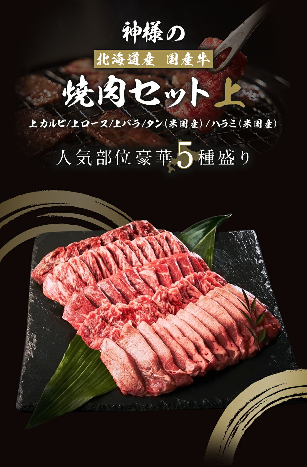 ギフト 北海道産 国産 神様の 焼肉セット【上】 上 カルビ 上 ロース 上 バラ (牛タン ハラミ 米国産) 約500~1kg(1キロ) 焼肉 約2~3人前 約4~5人前 食べ比べ 牛肉 国産牛 焼き肉 たん スライス 盛り合わせ 詰め合わせ 高級 霜降り グルメ 訳あり ではございま