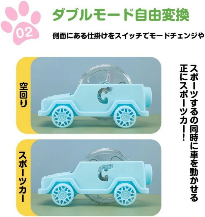 商品コード ts-qs-pet62 商品仕様 【静かでストレス解消】 車型ハムスター回し車は、ハムスターやデグー、ドワーフハムスターの運動不足を解消するために設計された静音のホイールです。 【 車型設計】車の形をしたデザインが特徴で、空回りとスポーツカーの2モードを自由に切り替えることができます。 【静音設計で快適】回し車ハムスターは、静かなホイールでペットとオーナーの安らかな時間を提供します。 【ロングランニング】ランニングホイールは、小動物の健康維持に最適で、長時間の運動をサポートします。 【 遊び道具としても楽しい】 車型ハムスター回し車は、運動と遊びを融合させ、ペットたちが楽しんで過ごせるアイテムです。 素材 プラスチック カラー ピンク、グリーン、ブルー、ホワイト サイズ M,L セット内容 回し車 原産国 中国 注意事項 ※お客様のモニター環境により実物の色合いと若干お色目が異なる場合がございます。 ※商品生地、色合い、コサージュやその他装飾部品の色やデザイン等、生産時期によって、差異が生じます。 そのため、同じ商品を複数点ご購入の場合、場合によって色、コサージュのデザイン等差異がでる場合がございます。ご了承ください。 ※着用?保管頂きます際には他のものとの摩擦などにより色移りや傷になる場合が 御座いますのでご注意ください。
