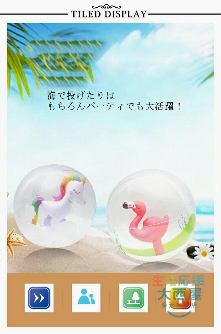 プール エアーボール 30cm マリン かわいい ビーチボール 海 浮き輪 3D ユニコーン フラミンゴ レジャー 水遊び おもちゃ