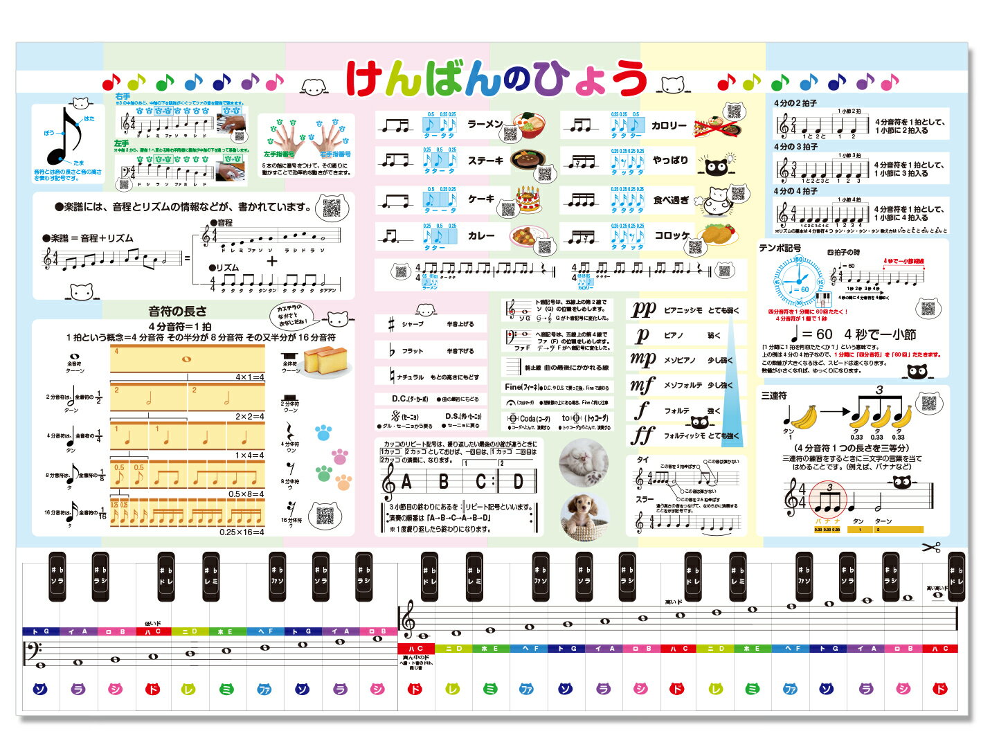 けんばんポスター2枚セット(A2サイズ)おんがくひょう おんがくのひょう 音楽の表 鍵盤の表 けんばん表A2ポスターリズム練習 リズムカード音符カード ピアノ教材 3歳〜 知育玩具 知育教材 A2サイズ音楽学習ポスター!演奏動画付き