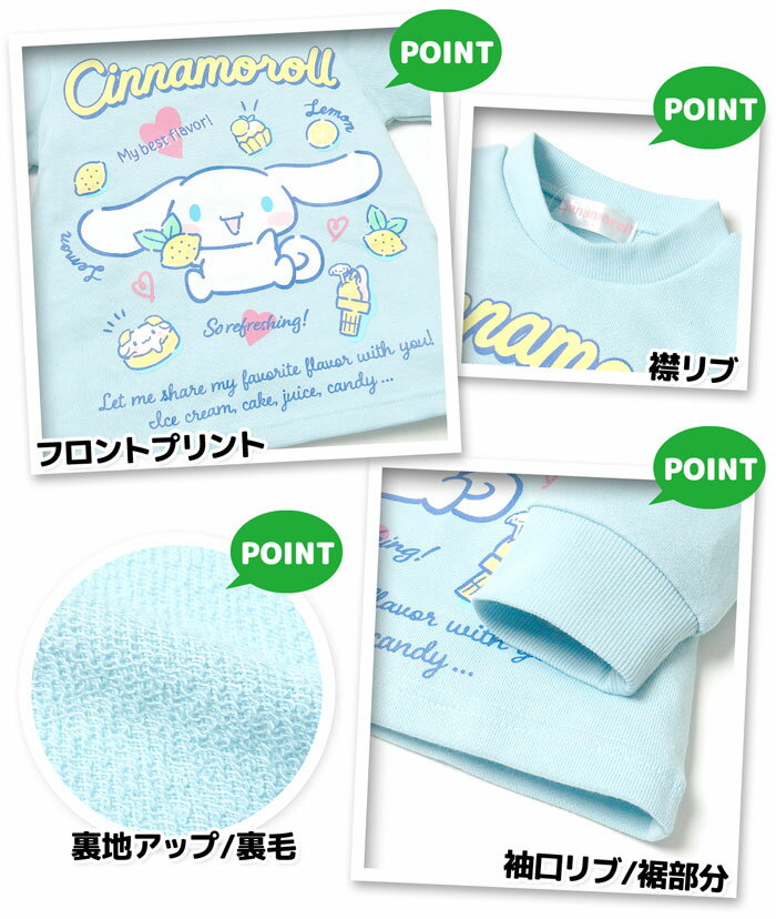 【送料無料】女児 ベビー 裏毛 長袖 トレーナー Sanrio サンリオ シナモロール シナモン キャラクタープリント ベビー服 女の子 90cm 95cm td-0737b【メール便対応】