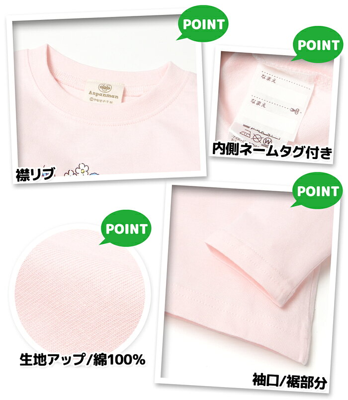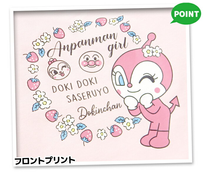 【送料無料】女児 ベビー 綿100% 長袖 Tシャツ アンパンマン ドキンちゃん お花&いちごリースプリント ネームタグ ベビー服 女の子 80cm 90cm 95cm iw-1171【メール便対応】