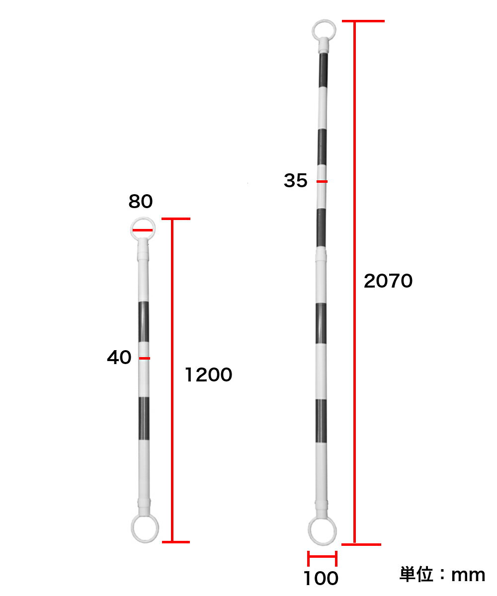 伸縮コーンバー 10本セット 赤/白 スライドバー カラーコーン用バー