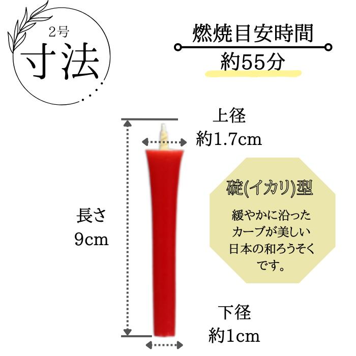 和ろうそく(わろうそく) 2号・イカリ型(朱)50本入「和ローソク・朱ローソク・朱ろうそく・赤ローソク・赤ろうそく・蝋燭・法要・葬儀」