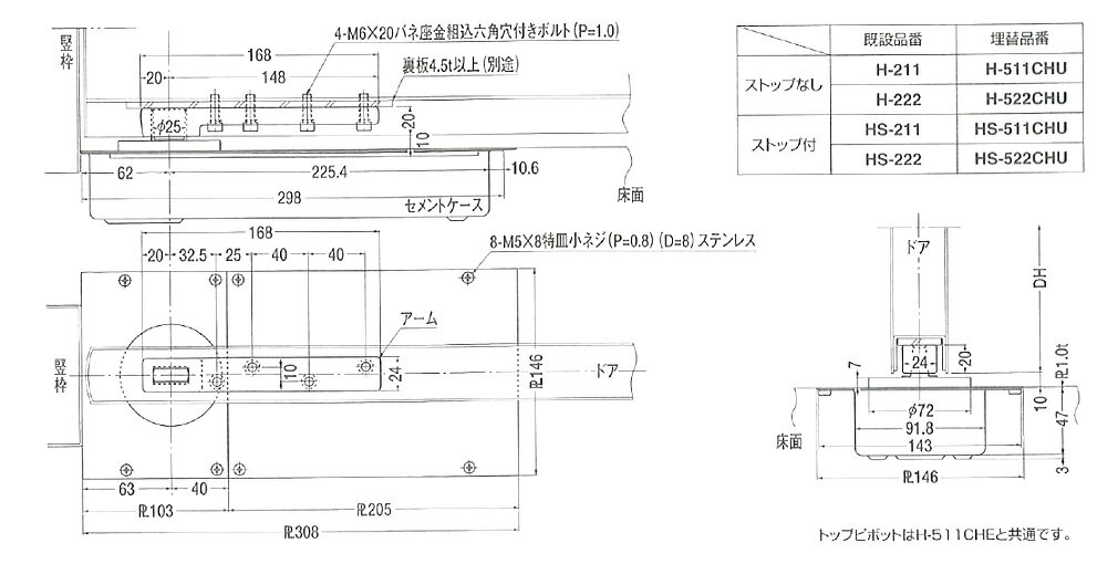 ニュースター フロアーヒンジ HS(H)-522CHU HS(H)-222埋替用