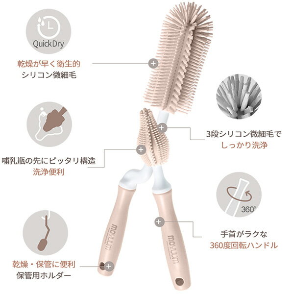よく一緒に購入されている商品3,480円3,090円2,720円 ▼買い回りエントリーでさらにポイント10倍▼▼エントリーでさらにポイント10倍▼▼ママ割エントリーでポイント2倍はこちらから▼▼クーポンはこちら▼▼その他のクーポンはこちらから▼▼配送状況についてご確認ください。▼ くすみカラーでおしゃれな moYUUm モユム シリコン哺乳瓶ブラシ2種セット。シリコンで素材なので水に濡れてもすぐに乾いてとっても衛生的!シリコンの部分は小さく3段になっていて哺乳瓶を隅々までしっかりと洗える形状になっています。哺乳瓶にも傷がつきにくく、小さな先端洗浄ブラシは哺乳瓶の乳首先端部分を洗えるようになっていて、おしゃれで実用的な哺乳瓶ブラシセットです。●お手入れ簡単! 食洗機・煮沸OK●水切れが良く、すぐに乾いて衛生的●ブラシがやわらかく表面をキズつけない●哺乳びん、グラス、マイボトルなどの洗浄に●耐久性に優れているので長く使えて経済的!セット内容:哺乳瓶用ブラシ1本、先端洗浄ブラシ1本■備考:素材持ち手/ブラシ台:ポリプロピレンブラシ:プラチナシリコン製造国:韓国耐熱温度持ち手/ブラシ台:20〜110℃/ブラシ:20〜250℃注意事項生産過程でで発生する微細な傷や黒い点のような汚れが生じる場合がございますが品質上問題ありません。モニターの発色具合によって実際の物と異なる場合がございます。あらかじめご了承ください。【moYUUM(モユム)】関連アイテムはこちら3,090円3,090円3,090円3,090円1,980円2,480円2,480円2,480円2,480円新着商品はこちら2025/11/291,210円2025/11/291,430円2025/11/291,408円再販商品はこちら2025/11/303,300円2025/11/3079,200円2025/11/304,950円2025/11/30 更新