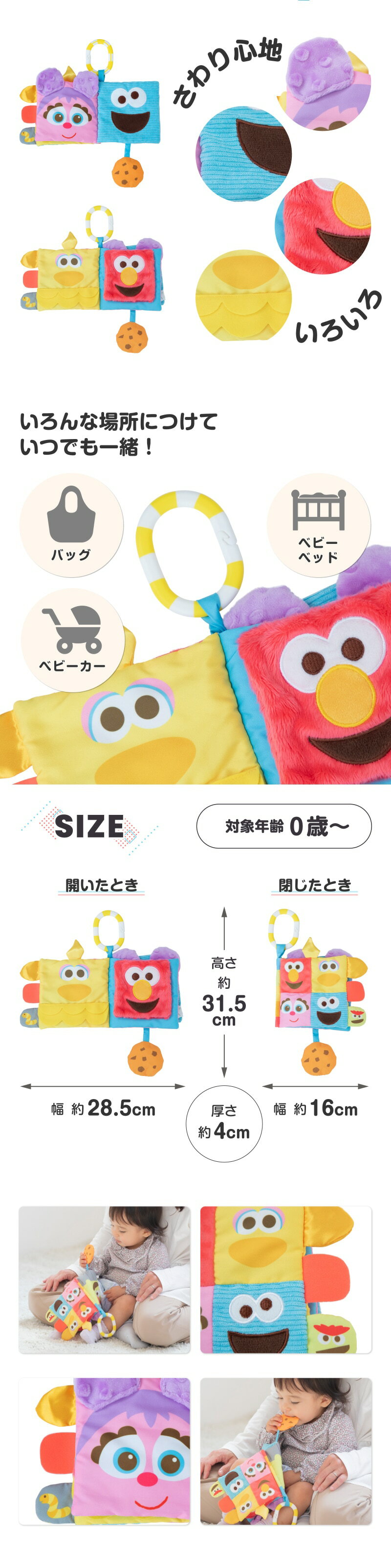 ▼買い回りエントリーでさらにポイント10倍▼▼エントリーでさらにポイント10倍▼▼ママ割エントリーでポイント2倍はこちらから▼▼クーポンはこちら▼▼その他のクーポンはこちらから▼▼配送状況についてご確認ください。▼ よく一緒に購入されている商品2,750円1,100円1,100円対象年齢 0歳からサイズ(リング・クッキー込み) 閉じた時:約幅16×高さ31.5×厚み4cm開いた時:約幅28.5×高さ31.5cm重量 59g材質 ポリエステル、ポリプロピレン、EVA関連アイテムはこちら2,750円1,430円1,980円1,320円1,320円1,650円2,420円2,420円2,200円新着商品はこちら2025/11/28880円2025/11/281,100円2025/11/281,430円再販商品はこちら2025/11/2727,980円2025/11/2727,980円2025/11/2726,800円2025/11/29 更新セサミストリートのお友達がソフトブックになって登場!サテン・リブ・カサカサ音などいろいろなさわり心地で触覚を刺激します。押すとぷっぷっ!と鳴るページや、かくれんぼをしているわんちゃん(バークレー)など仕掛けがたくさん!ページをめくるたび、鮮やかなカラーで、イメージと色の認識力を養います。クッキーモンスターのクッキーを触ると、赤ちゃんがだいすきなカサカサ音がします!リング付きなので、おうちの中でもお外でもいつでも一緒に遊べます!関連商品はこちらハシートップイン バスぐるみ (はらぺこ...1,485円GUND ぬいぐるみ セサミストリート エッグ1,760円〜1,760円【エントリーでP10倍】セサミストリート...1,980円コッパーパール セサミストリート バン...3,520円〜3,520円コッパーパール セサミストリート おし...3,520円〜3,520円