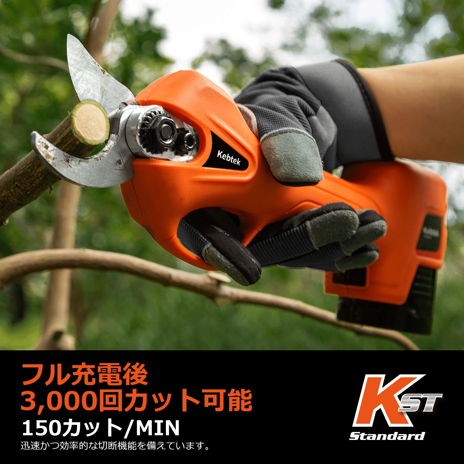【軽量880g】Kebtek 電動剪定鋏 切断径25mm コードレス 充電式剪定ばさみ 16.8V 電動バサミ ブラシレスモーター搭載 スパスパと切れ味良い 園芸 庭木 果樹 農家 太枝切り 2.0Ahリチウム電池2個 日本語説明書付き PSEあんぜん認証取得済み 品番YDN-B007