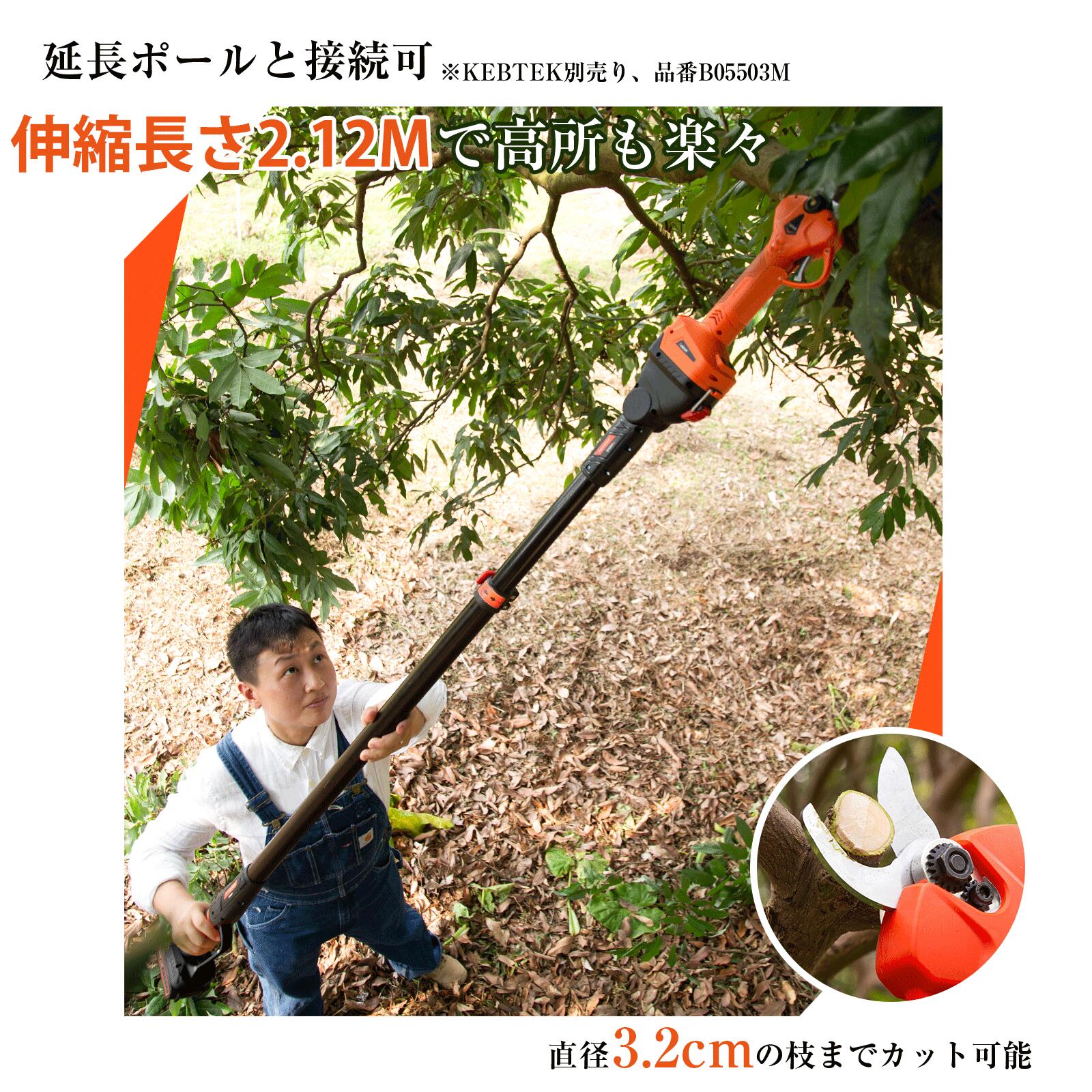 【マキタ互換、延長ポール接続可】Kebtek電動剪定鋏 切断径32mm コードレス 充電式剪定ばさみ マキタ18Vバッテリーと互換可 電動 園芸はさみ LCD切断回数と残量表示 日本語取扱説明書付き 品番B05532-body(本体のみ、バッテリーは別売り)