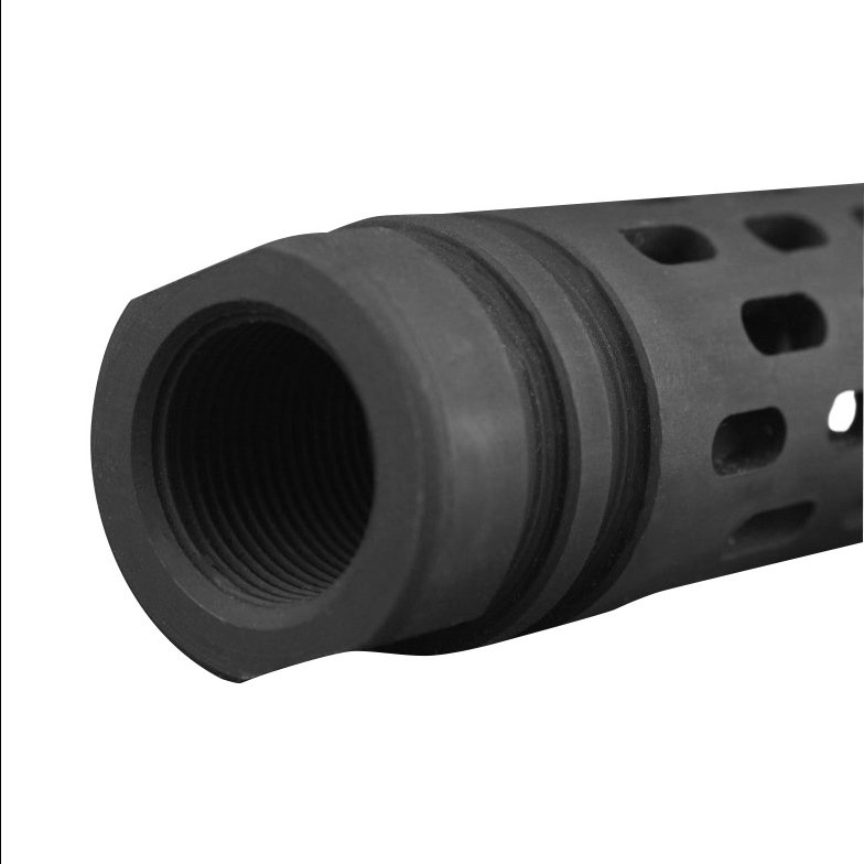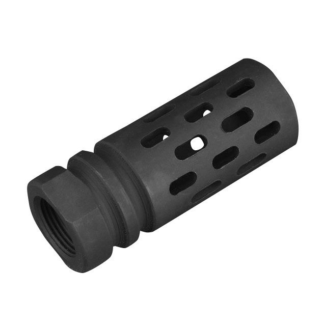 BIGDRAGON BCM Battle Comp 1.0スタイル ハイダー 逆ネジ(CCW)BIGDRAGON BCM Battle Comp 1.0スタイル フラッシュハイダー 14mm逆ネジ(CCW) BCM(Bravo Company USA)での取り扱いで有名なBCE(BATTLE COMP ENTERPRISES)Battle Comp 1.0のデザインを踏襲しつつ、ガス分散口を全面に配置したビッグドラゴン製ハイダーです。 14mm逆ネジ仕様となります。 本来Battle Comp 1.0では、フラッシュハイダーとしての機能を果たしつつ銃口の跳ね上がりを軽減するため下側は塞がれたデザインとなっていますが、本製品では全体的に燃焼ガス分散のための穴が配置されており、より武骨な外観となっています。 黒色処理されたスチール製となり質感も良く、エアガンのフロントマスクをよりカッコ良く魅せられるハイダーです。 ■本体仕様 全長:49mm 直径:22mm 重量:50g ※海外製品のため、商品表面にキズや擦れ、塗装ムラ、外箱の潰れなどが生じている場合がございます。予めご了承ください。 BD3538