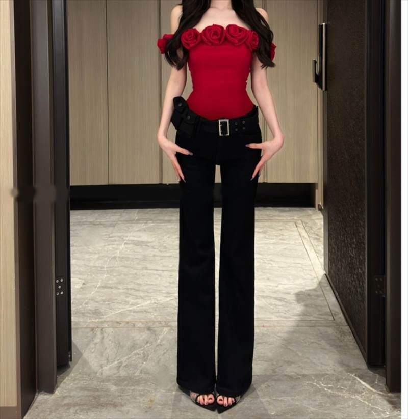 立体ローズコサージュ装飾 クロップドトップス レディース トップス チューブトップ ベアトップ スリム 細身 タイト すっきり ショート ノースリーブ オフショルダー 襟なし 鎖骨見せ デコルテ見せ ストレッチ 伸縮性 大人可愛い きれいめ シンプル 韓国 オルチャン