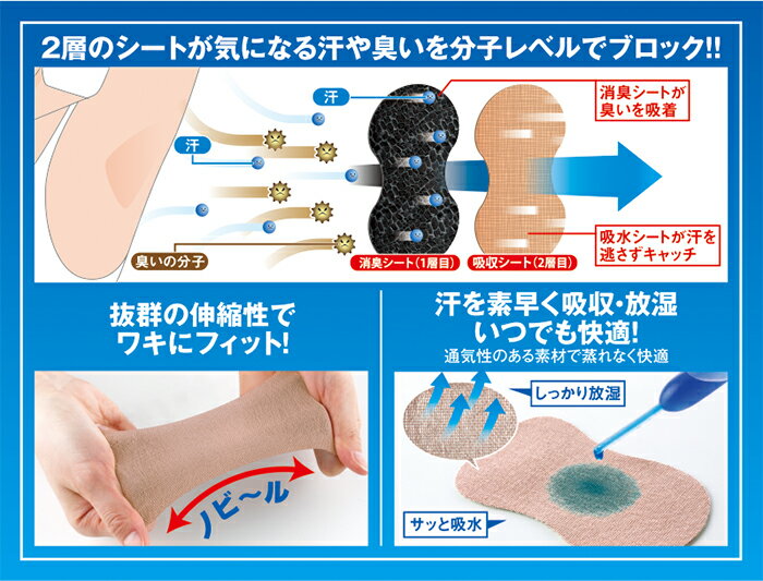 正規品 送料無料 脇汗消臭シート 汗取り パッド 制汗シート わき汗対策 強力消臭 防臭 汗ジミ防止 さらさら快適 速乾 ワキサラ消臭シート 公式 プランドゥ アイディア アイデア