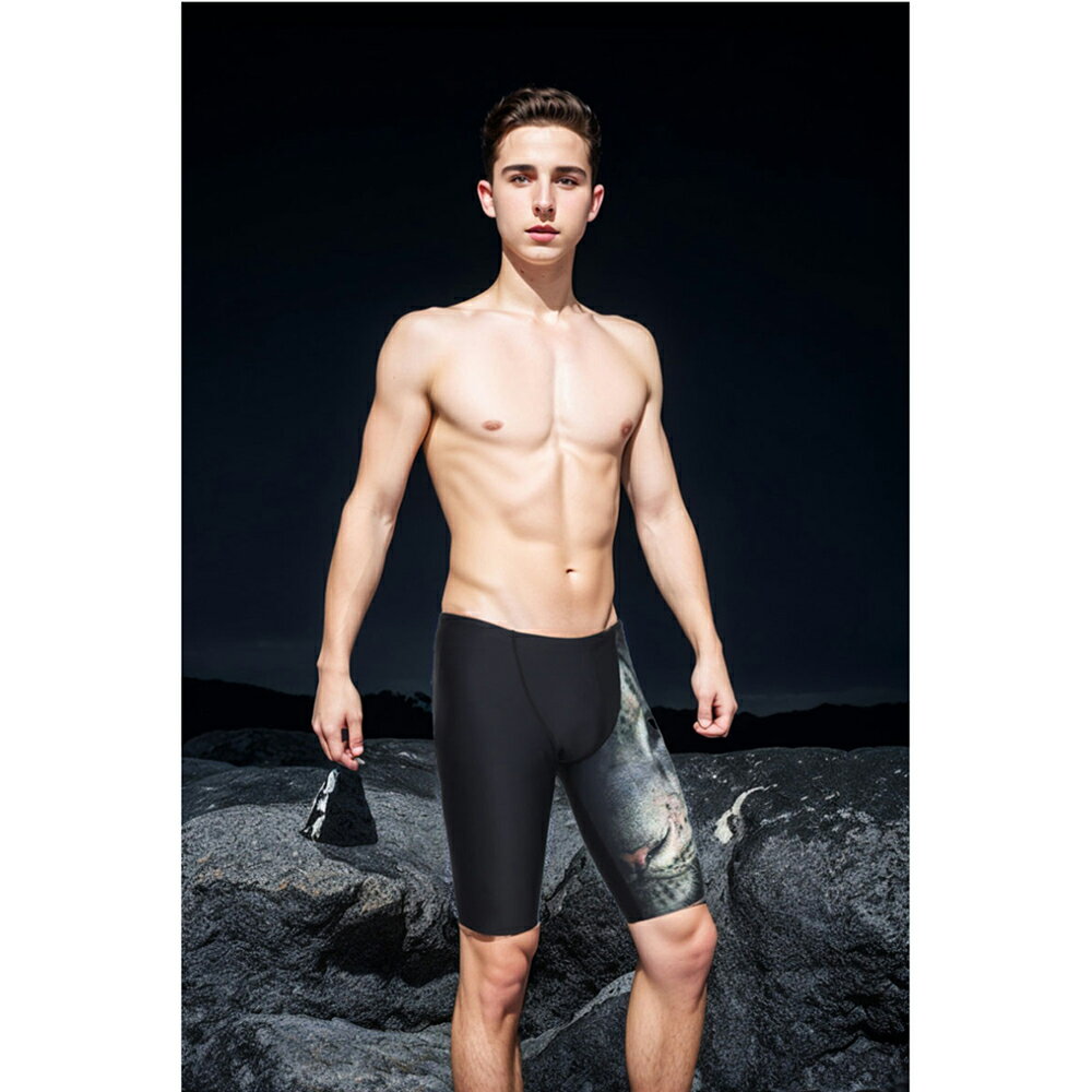 メンズ水泳パンツ スイムウェア 豹柄モチーフデザイン L XL 2XL ショートパンツ 水泳 競泳 フィットネス 水着 速乾 伸縮 スリム 水泳 男 メンズ 競泳用 ジム スイミングウェア ブラック 黒 大人 プール 夏