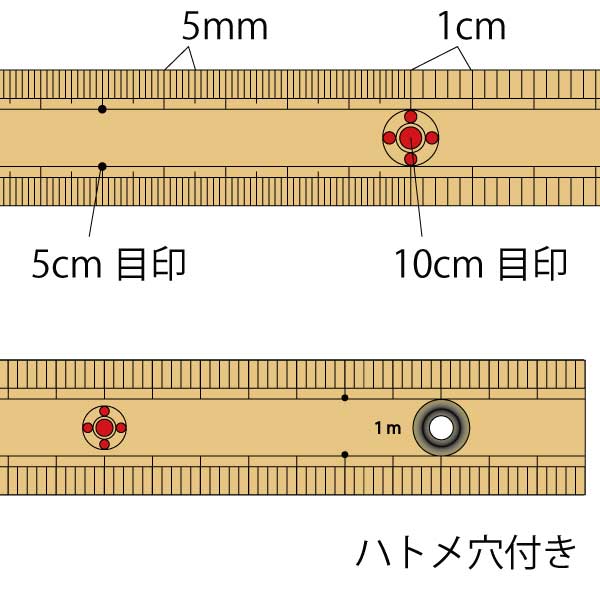 竹尺 (両目)1m ハトメ付(ものさし 定規 学校 溝 竹ものさし 和裁 手芸 ハンドメイド パッチワーク 縫い代 ぬいしろ)おさいほう屋