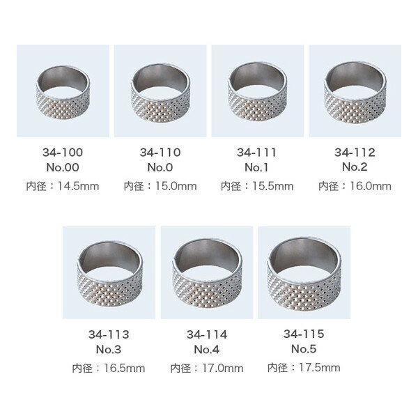 クロバー 総目指ぬき(No.00〜No.4) 品番:16177-81 入数:1 用途:指貫 種類: No.00 No.1 No.2 No.3 No.4 材質: 配送:メール便OK 針が通りにくい布もラクに縫えます。 針の頭を指ぬきにあてて、 指と人差し指で軽くつかみながら針を持つと、 きれいに早く縫えるようになります。
