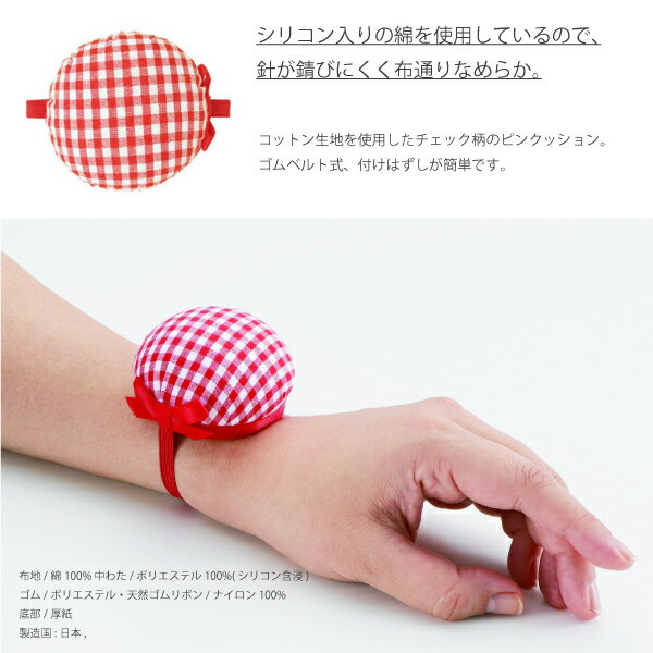 クロバー カラーリストピンクッション 赤 23-082針山 針差し 手首 かわいい おしゃれ 使いやすい さびにくい 手縫い針 ミシン針 ハンドメイド 洋裁 裁縫 裁縫道具 セット ピンクッション 和裁 クラフト)おさいほう屋