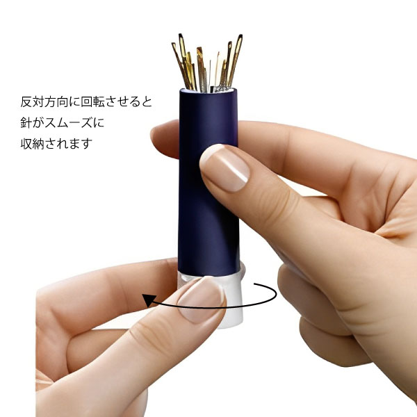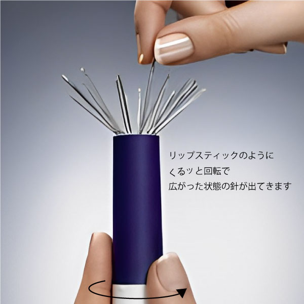 プリム ニードルツイスター ミントグリーン針 610288 品番:S22334 内容:ケース1個、針15本 ●サイズ:約85mm×28mm(キャップ装着時) 15 本の手縫い用針とかがり針の品揃えが含まれています リップスティック方式のプリムラブの可愛いカラー、ミントグリーンのプラスチック製の携帯可能な針ケースです。 縫い針6本、刺繍針5本、ダーニング針4本(合計15本)の針が入っています。 <エルゴノミクス>特許取得済みで人間工学的に設計されたニードルツイスター。 針はニードルツイスター内の磁石によってケースにくっつき、倒れても針がこぼれません。 ツイスターの下端を回すことにより、針をねじ込んで収納、逆に回して緩めると、針は扇形に広がり、一本一本を識別することができ、簡単に目当ての一本を取り出すことができます。 様々なサイズの針を一緒に保管しても、取り出しやすい優れものです。
