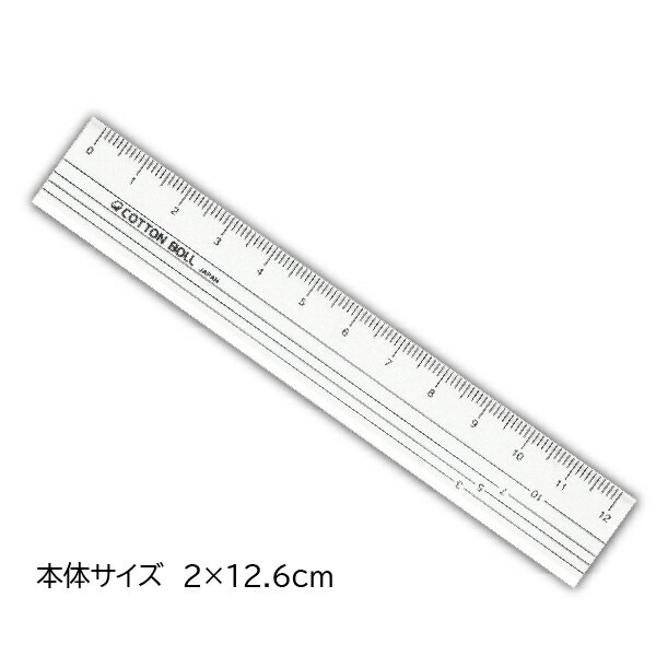 金亀 COTTON BOLL キルトスケ-ル12cm 1112 品番:10622-23 入り数:1 カラー:黒、黄色 サイズ:2×12.6cm 厚み:1mm 材質:アクリル 12は3・5・7・10ミリの平行線入り。 目盛の反対側は斜めにカットされており、 鉛筆での印付けの際に正確に線を引くことが出来ます。 (黒)・・・淡色生地用/薄色生地に最適 (黄)・・・濃色生地用/黒や紺など濃色生地に最適