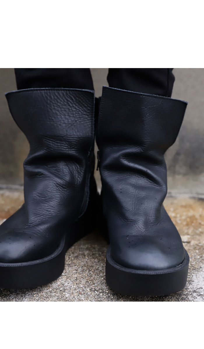 ※こちらの商品は在庫限りのアウトレット商品の為、返品・交換は不可となります。レザー×厚底。 モードカジュアルの先駆けとなる一足を。 黒で合わせやすく、カジュアルなコーデにもスッと馴染む。 分側の風合い、柔らかさ、カタチ、履き心地、そして機能性にまで 一切妥協せず、完全オリジナルでお披露目です。 ≪DETAIL≫ ・コロンと丸みのある形で重すぎず女っぽさもあり甘辛に仕上がります。 ・サイドファスナーで着脱も楽々。 ・シンプルさとアウトソールのバランスが絶妙。 ・厚底でスタイル良く見せてくれる。 ≪FABRIC≫ ・長く愛せる、上質な本革。 ・驚くほど柔らかで、自分の足に馴染んでいく。 ・ふかふかの中敷きで疲れにくくガンガン歩けちゃいます! ≪COLOR≫ ブラック の1色展開! ≪SIZE≫ S・M・L・LL の選べる4サイズ展開! サイズ S(約23cm〜約23.5cm相当) M(約23.5cm〜約24cm相当) L(約24cm〜約24.5cm相当) LL(約24.5cm〜25cm相当) 足長(靴底) 約25.5 約26 約27 約27.5 足幅(靴底) 約9.4 約9.6 約9.8 約10 ワイズ 約22 約22.5 約23 約23.5 履き口の週長 約26 約27 約29 約30 かかとの長さ(内寸) 約15 約15.5 約15.5 約15.5 ヒールの高さ 約4.5 約5 約5 約5 足首周り 約30 約31 約32 約33 ※サイズは目安にご参考下さいませ。※サイズには多少の個体差がある場合がございます。ご了承くださいませ。※入荷輸送時に、靴箱に多少の汚れ・キズ・角凹みなどが発生致します。ご了承の上、お買い求め下さいませ。 素材 本革 当店スタッフのサイズアドバイス サイズ 足の特徴 スタッフアドバイス 普段24.0-24.5cmを履くスタッフY.Mさん 幅・甲普通 LとLLを≪靴下≫で試着しました。 L <幅>ぴったりジャストサイズです <甲>ちょうど良いです <つまさき>ちょうど良いです <かかと>ゆったり大きめです LL <幅>ゆったり履くのにちょうど良いです <甲>ゆったり大きめです <つまさき>程よくゆとりがあります <かかと>大きくて歩くと浮きます <ひとこと>甲のつま先側(指の付け根辺り)は少し当たる感じがありましたが、それ以外はLサイズがピッタリでした。足首周りも締め付け感なくゆったりとしているので、大きめのサイズだと少しブカブカしそうです。履いていくうちに革が馴染むことも考え、私はLサイズを選びます。本革の柔らかくしっとりとした質感が可愛く、色んなテイストに合わせやすそうです。 普段25.0cmを履くスタッフH.Gさん 幅広甲普通 LとLLを≪靴下≫で試着しました。 L <幅>窮屈に感じます <甲>窮屈に感じます <つまさき>窮屈でつま先が曲がり窮屈です <かかと>窮屈です LL <幅>少しゆとりがあります <甲>少しゆとりがあります <つまさき>余裕があります <かかと>余裕があります <ひとこと>Lサイズは全体的に窮屈できつく感じました。LLサイズは程よいゆとりがあり、丁度よかったのでLLサイズを選びます。シンプルなのに他にないデザインがとてもかっこいいと思います。 普段22.5-23.0cmを履くスタッフM.Sさん 幅狭甲普通 SとMを≪靴下≫で試着しました。 S <幅>丁度良いです <甲>丁度良いです <つまさき>丁度良いです <かかと>程よいゆとりがあります M <幅>程よいゆとりがあります <甲>丁度良いです <つまさき>程よいゆとりがあります <かかと>ゆとりがありますが浮くほどでもないです <ひとこと>薄手の靴下着用でSサイズのかかと以外がぴったりでした。 厚みのある靴下等履くと少し窮屈に感じてしまうかなと思いました。程よい厚底で歩きやすく、スタイルアップも叶うのがとてもいいと思いました。 普段23.5cmを履くスタッフHさん 幅細め甲低い SとMを≪靴下≫で試着しました。 S <幅>ピッタリです <甲>丁度良いです <つまさき>丁度良いです <かかと>丁度良いです M <幅>程よく余裕あります <甲>少し余ります <つまさき>少し余ります <かかと>歩くと浮いてしまいます <ひとこと>Mサイズだと歩いた時に踵が浮いてしまうのが気になったため、購入するならぴったり履けるSサイズを選ぶと思います厚手の靴下で着用することが多い場合や、ぴったり履くのが苦手な場合はMサイズの方が良いかなと思いました。 【検索ワード】日本製 本革デザインブーツ ブーツ レディース 靴 本革 厚底 痛くない 歩きやすい プラットフォーム ショート丈 シンプル ショートブーツ クッション 柔らかい レザー 牛革 天然素材 シボ感 モード サイドファスナー 黒 ブラック antiqua アンティカ 大人 おしゃれ 10代 20代 30代 40代 50代 60代 春 夏 秋 冬 お洒落 カジュアル かわいい かっこいい あんてぃかメーカー希望小売価格はメーカーカタログに基づいて掲載しています