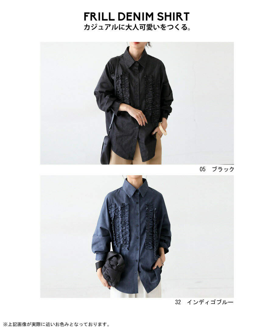アウトレット 50%OFF フリルデニムシャツ シャツ レディース トップス・(100)メール便可【258B】