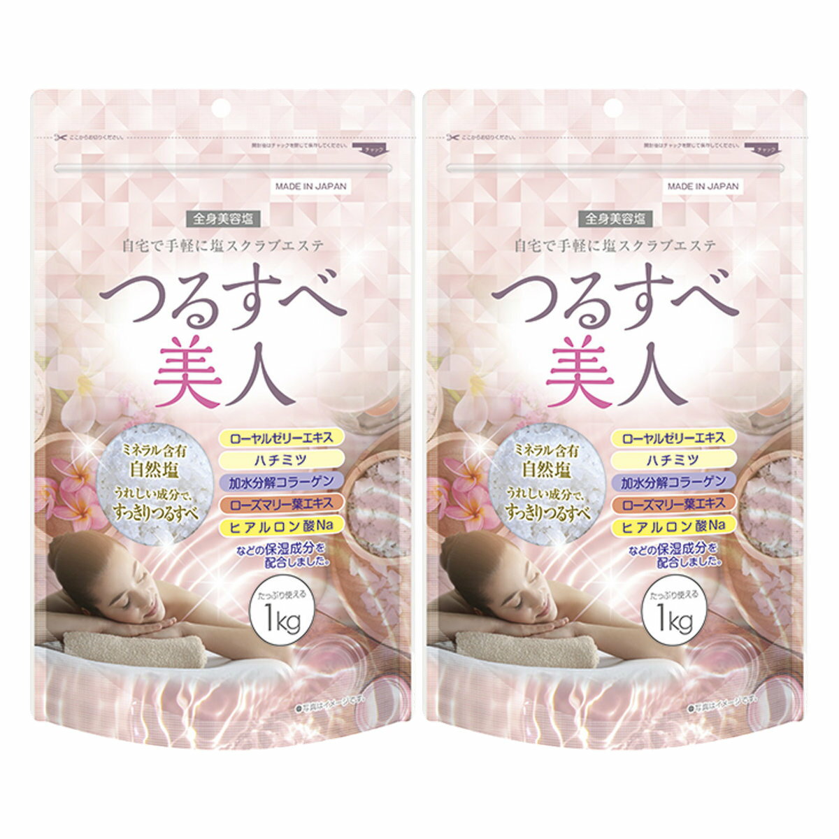 【最大400円OFFクーポン】【2個セット】ユーワ つるすべ美人 1kg×2個【全身美容塩】【 ボディケア マッサージ】【宅配便送料無料】 (6049185-set2)