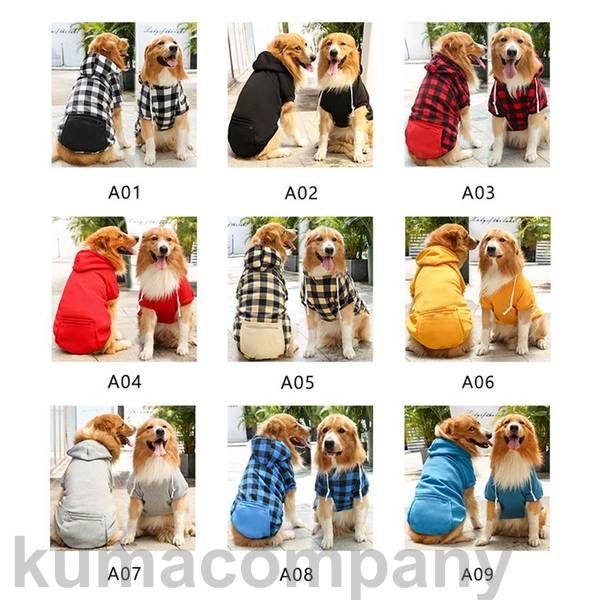 犬 服 ペット用品 犬服 ドッグウェア パーカー 傷なめ防止 ペットウェア ポケット付き チェック柄 秋冬 トレーナー 小型犬 中型犬 大型犬 無地