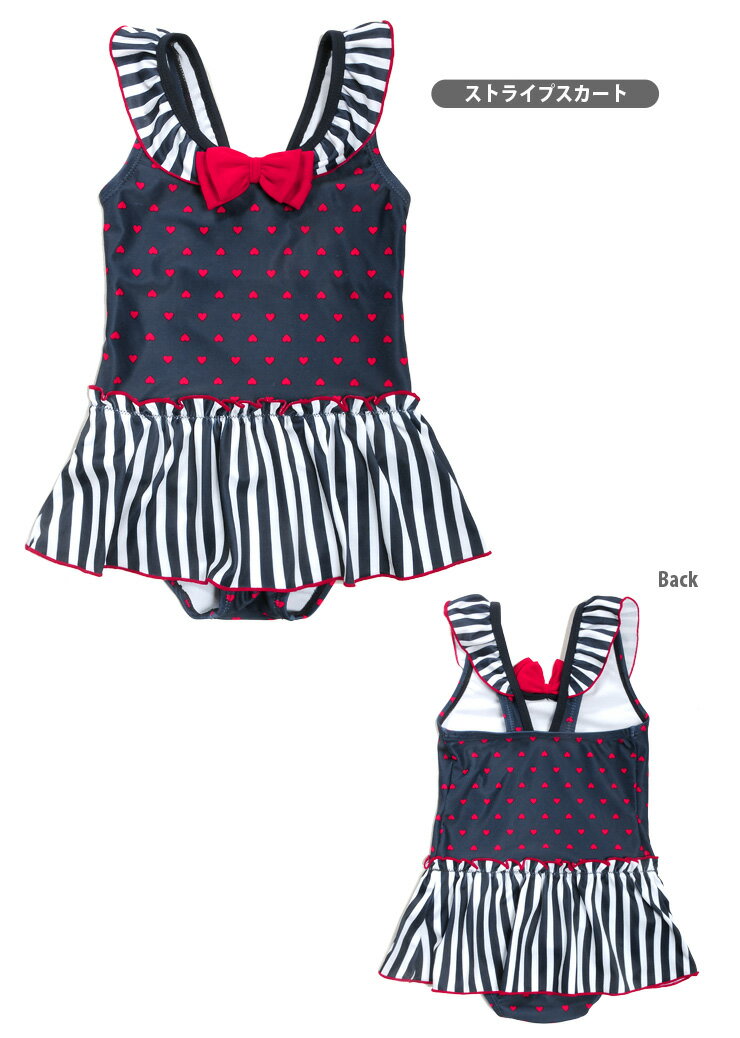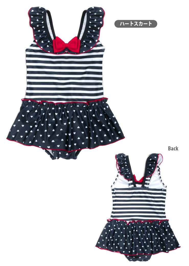 【エントリーでポイント10倍 11/20 20時〜】PICOLUNA キッズ ジュニアワンピース 水着 100 110 120 130 ピコルナ 33751632 ミニスカート 子ども 女児 女の子 ストライプ ハート フリル リボン ネイビー レッド ホワイト ピンク