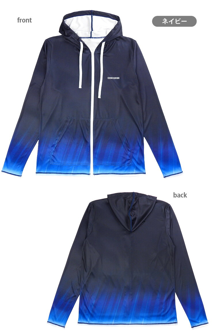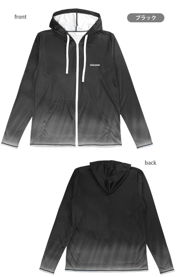 【エントリーでポイント10倍】CONVERSE フード付き 長袖 ラッシュガード 水着 メンズ M L LL ブラック ネイビー ブルー 835402 コンバース ラッシュパーカー ジップアップ ジッパー ファスナー 前開き UPF50+ UVカット 紫外線防止 グラデーション 黒 紺 青 大きいサイズあり