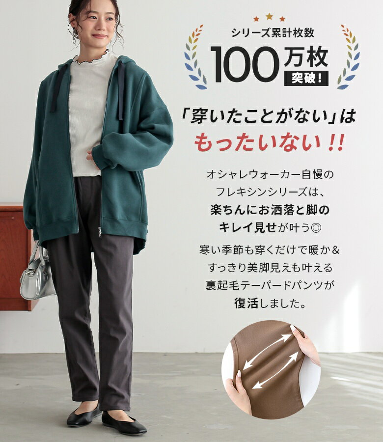 【ほぼ全品10%OFF 12/1 23:59迄】パンツ 裏起毛 レディース ボトムス ロングパンツ あったか 防寒 テーパードパンツ フレキシン ストレッチ マシンウォッシャブル ウエストゴム 美脚効果 美脚 体型カバー 秋 冬 オシャレウォーカー【メール便不可】【20】
