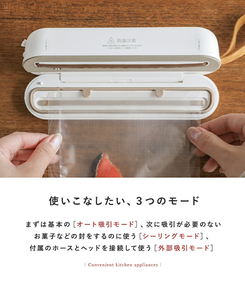サイズ 【本体】縦×横×高さ4.5×19×4.8cm ケーブル長さ25cm 【真空パック用袋(5枚)】縦×横25×15cm 【箱】縦×横×高さ8×25×6cm 詳細データ 重量本体のみ:約315g(総重量:約435g) 生産国中国 素材ABS 入力5V/2A、40W 吸引力60kPa 配送条件国内配送のみ ※再入荷のご希望に添えるよう努めさせて頂いておりますが、 生産時期の原材料高騰や為替により、販売価格が変動することがございます。 真空パック機 真空パック 真空シーラー シーラー ヒートシーラー 真空シール フードシーラー 家庭用 コンパクト 便利 アウトドア 持ち運び キッチン キッチン雑貨 家電 真空保存 調理 保存 料理 冷凍 冷蔵 密閉 Suseal スシール 小型 キッチン便利グッズ ハンディシーラー 家庭用シーラー 食材保存 充電式 背面マグネット 小分け保存 操作簡単 鮮度長持ち 使いやすい 卓上 本体 軽い 手軽 【TP】 シンプル ライフスタイル雑貨 プレゼント 贈り物 ギフト 生活雑貨 引っ越し祝い 食品 フード コードレス 簡単操作 吸引 シーリング ストラップ付 typeC 水洗い おうち時間 台所 旅行 レジャー キャンプ バーベキュー おしゃれ トレンド 流行 ママ 母 母親 レディース メンズ ホワイト 白[ID]25em0pe[充電式コードレス真空パック機Suseal]