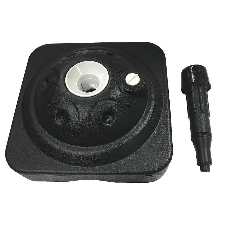 商品名:のぼり 注水式ポールスタンド 色:ブラック/ホワイト サイズ:約W350×D350mm 適合ポールサイズ:φ19~φ23mm 材質:PE製 タンクには約8Lの水が入ります。 ※注水時の重さは約10kgです。 画像3と5のように組み立てされていない状態でのお届けとなります。 ※組み立て方法は挿して回し込むネジ式となっております。 《ご注意》 モニター発色の具合により、実物とは色合いが異なる場合がございます。