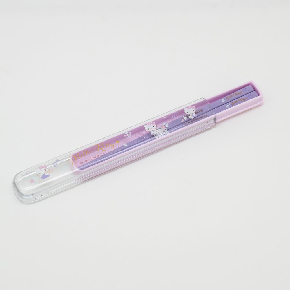 日本製 子供 箸箱セット 食洗機対応 16.5cm 弁当用 給食 お箸 スライド式 携帯用 抗菌 乾燥機対応 ランチ 持ち運び 箸ケース はし すべりどめ付き プラスチック 保育園 保育所 幼稚園 入園 入学 準備 かわいい BPAフリー ハローキティ リボン | OSK KTR No.2 HS-11 ▽