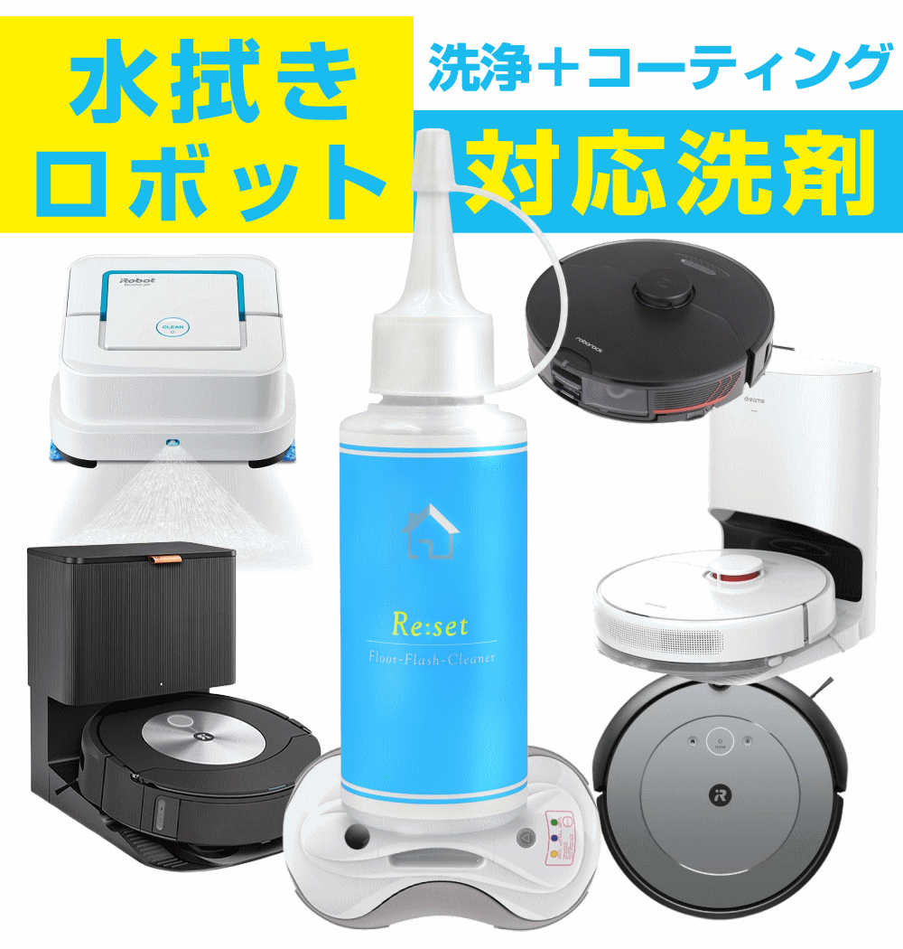 スーパーSALE中は送料無料!高評価!! Re:set 水拭きロボ 洗剤 水拭き掃除機 洗浄剤 クリーナー 専用洗剤 お掃除ロボ 水拭き ロボット掃除機 お掃除+汚れ防止コーティングでサラサラ床 フローリング 国産 代替 代用 ペット 幼児 安心 中性 日本製 水拭きモップ 回転モップ