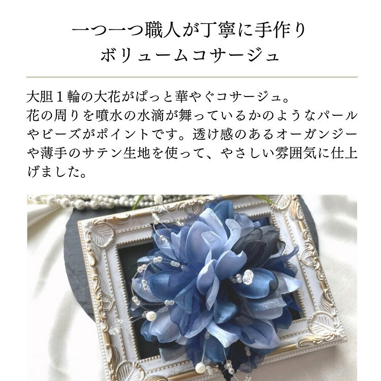 コサージュ 結婚式 フォーマル 母 親族 ママ 卒業式 入学式 卒園式 入園式 お宮参り 成人式 謝恩会 披露宴 二次会 演奏会 同窓会 発表会 授賞式 七五三 セレモニー 祝い 式典 手作りコサージュ 叔母 服装 ドレス フォーマルスーツ パーティー ネイビー 紺 フラワー パール 花