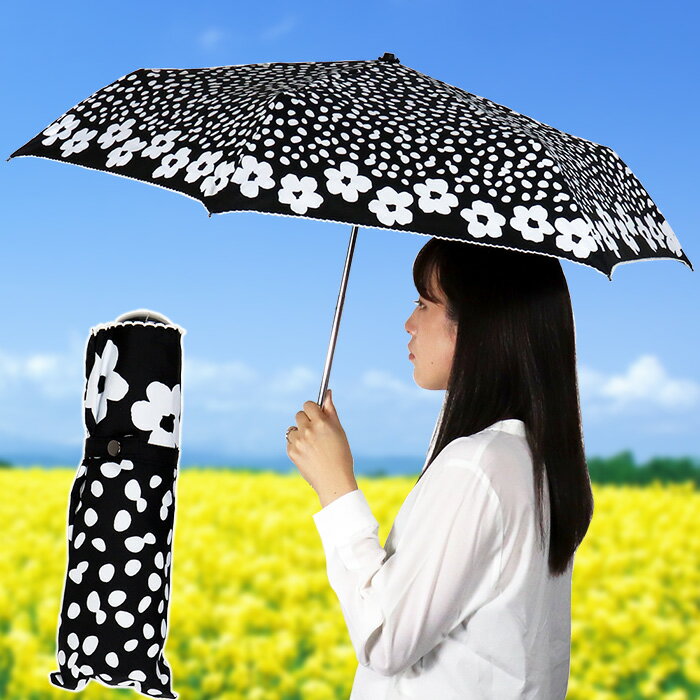 傘 日傘 晴雨兼用傘 レディース 折りたたみ 596199-F 花柄 ドット柄 かわいい おしゃれ 全天候 軽量 水玉 プリント 母の日 プレゼント ラッピング 通勤 通学 自分用 ブラック パラソル たたみやすい 普段使い 女性用 コンパクト
