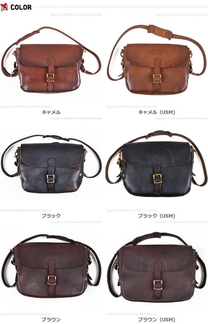 ■サイズの測り方はこちら★ヴァスコ(vasco) ポストマン ミニショルダーバッグ VS-249L ●サイズ:約W27cm×H22cm×D9cm ●ハンドル部分/約102cm-112cm ●革:カウハイド(姫路産フルベジタブルタンニン) ●内張り:コットンオックスフォード ●手染めレザー ●生産国:日本 1900年代初頭から1960年代にかけて、米国のポストマン(郵便達員)達に使用されていたメールバッグをベースにしたレザーショルダーバッグです。姫路産フルベジタブルタンニンレザーを、「丘染め」と呼ばれる伝統的な手染め製法で一枚一枚丁寧に染め上げたあと、オイルを染み込ませて焦げ感を出し、ヴィンテージのような深みのある風合いに仕上げています。ライナーに頑丈なキャンバス地を使用することで、永く愛用しても型崩れしにくい頑強な作りとなっています。 コチラの商品はU.S.MAIL刻印の有・無をお選びいただけます。 刻印有りバージョンは、フラップ中央部にU.S.MAILのハンドスタンプが施されています。 キャメルはやや赤茶系のブラウンで、ムラ感が強く、灼けたような表情が特徴。デニムとの相性も抜群です☆ マットなブラックは、真っ黒ではなく特濃ブラウンのようなカラー。重厚な雰囲気にブラスパーツとのコントラストが際立っています。 深みのあるブラウンは落ち着いた印象。ヴィンテージライクな表情で、幅広いスタイリングに合わせやすいのも魅力です。 キャメル キャメル(USM) ブラック ブラック(USM) ブラウン ブラウン(USM) ※この商品はレザーの素材感と風合いを残すために、表面に染めムラや小傷・シワがございますが、 これらは商品個々の特徴としてご理解頂ますようお願い申し上げます。 ※こちらの商品は手染めレザーのため、色目に個体差がございます。そのためお届けの商品が HP上の画像と印象が異なる場合がございますので予めご了承ください。※手染めレザーの為、衣服等の接触部分に移染する場合がございますので十分ご注意ください。※メーカーの意向により、内張り生地のカラーが予告なく変更となる場合がございます。 その為、お届けの商品と画像のカラーが異なる場合がございますので予めご了承ください。