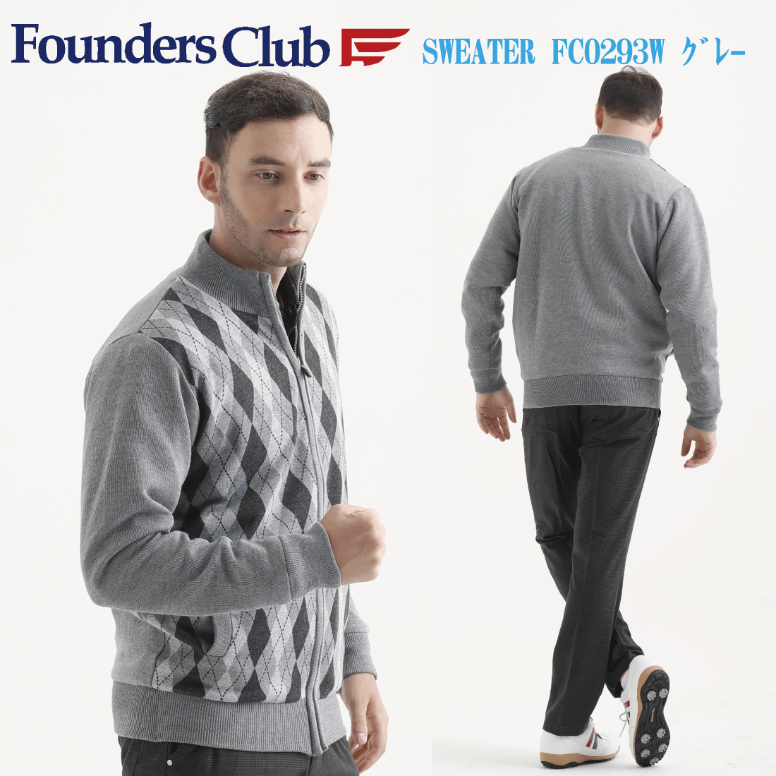 【半額!スーパーSALE】 ゴルフウェア メンズ フルジップ 防風 セーター FC0293W アーガイル柄 Founders Club ファウンダースクラブ 2021年秋冬モデル おしゃれ