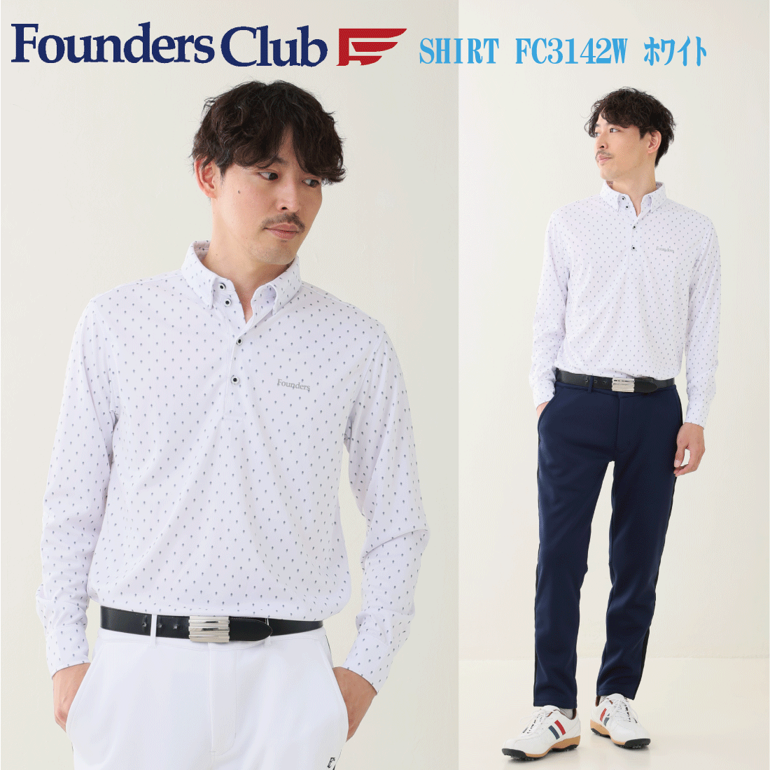 ゴルフウェア メンズ 長袖 ボタンダウン シャツ おしゃれ FoundersClub ファウンダースクラブ 2024年 秋冬モデル FC3142W