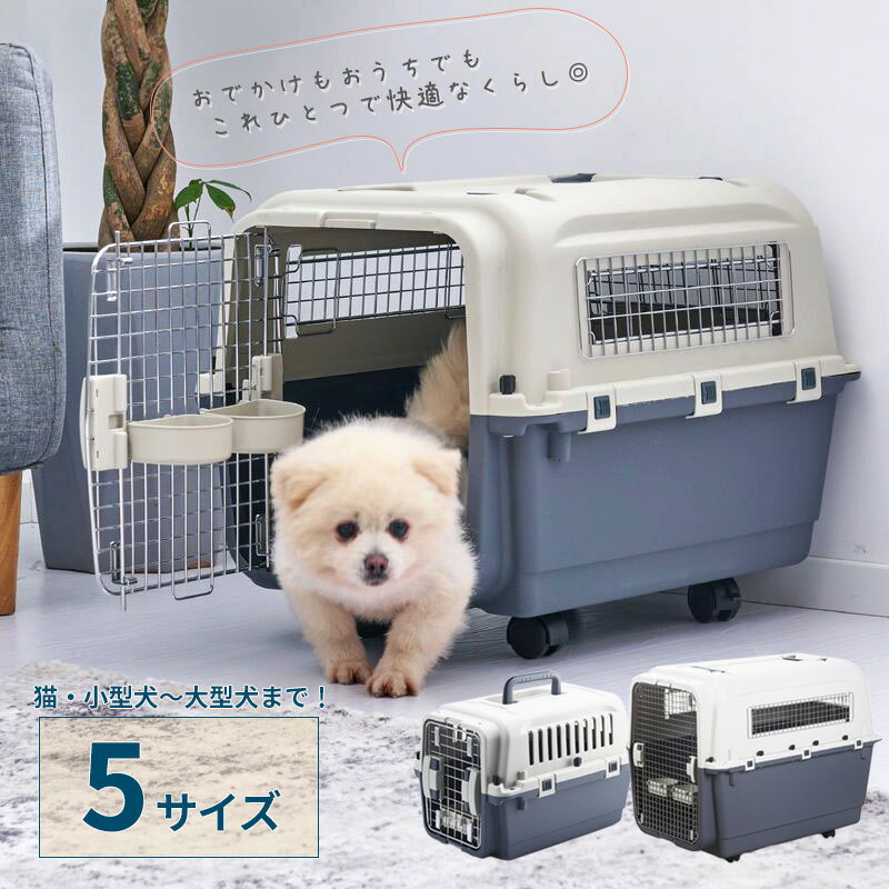 ※メーカー希望小売価格はメーカーカタログに基づいて掲載しています。 ※メーカー希望小売価格はメーカーカタログに基づいて掲載しています。 ※メーカー希望小売価格はメーカーカタログに基づいて掲載しています。 ※メーカー希望小売価格はメーカーカタログに基づいて掲載しています。 ※メーカー希望小売価格はメーカーカタログに基づいて掲載しています。 猫や小型犬などの小さなペットから大型犬にまで対応する5サイズ展開! 軽量で丈夫、セパレート式でお手入れも簡単なペットキャリーです。 キャリーとしてはもちろん、扉をはずせばハウスにもなるので、 動物病院やカットサロンへの日常での移動や、旅行や帰省時には 車や新幹線、飛行機などでの移動と旅先でのハウスとしても活躍します! 工具不要で簡単に組み立て、解体できるので、使いたいとき以外は 分解してコンパクトに収納することも可能です。 汚れても丸ごと水洗いできるPP製で衛生的にも安心です。 【商品詳細】 ■タイプAB 猫、小型犬用 ボウル1、ハンドル1、キャスターなし 材質:PP、鉄 ■タイプCDE 中型犬〜大型犬用 ボウル×2、ハンドル×2、キャスターあり 材質:PP、鉄