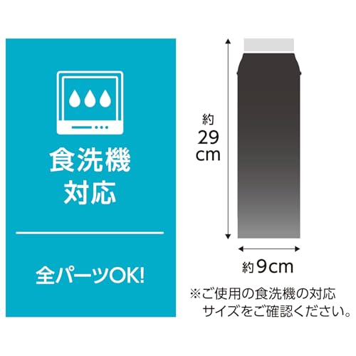 ・FJR-1501 BK-G・ブラックグラデーション1500 ml・個数:1・本体サイズ(約):幅9.5×奥行き9.5×高さ32.5cm、本体重量(約):500g、容量:1.5L・保冷効力:9℃以下(6時間)・素材:内びん:ステンレス鋼 / 胴部:ステンレス鋼(アクリル樹脂塗装)/ フタ・キャップ本体:ポリプロピレン / フタパッキン・シールパッキン・ボディリング・ソコカバー:シリコーンゴム●全パーツ食洗機OK ●衝撃に強いソコカバー付き ●ワンタッチ・オープン ●ロックリング付きで安心 ●軽量・コンパクトモデル ●握りやすいボディリング(1000/1500mlのみ)