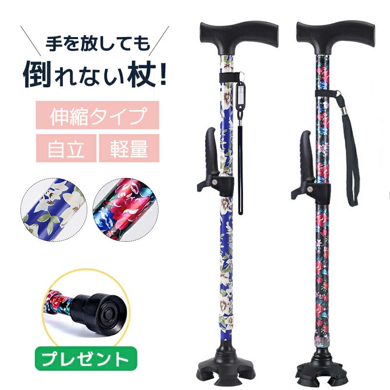 フジホーム かるがもファム2 4点DX 杖 歩行 移動 多点杖 伸縮 自立式 移動 ステッキ 安定感 補助 介護 介助 看護 多脚 四点 おしゃれ 女性 花柄 レディース 386262