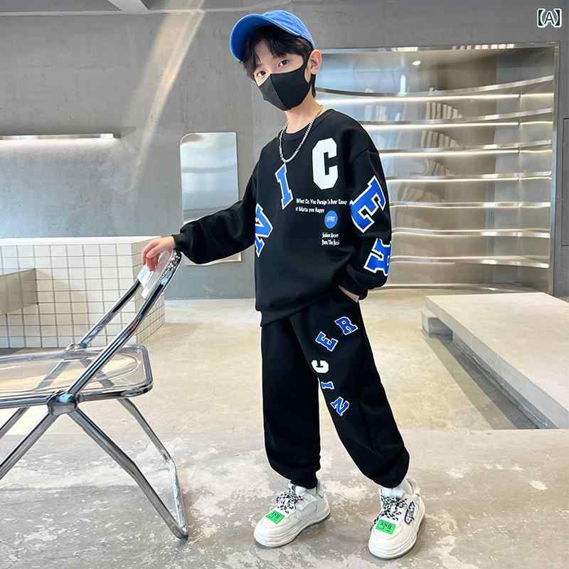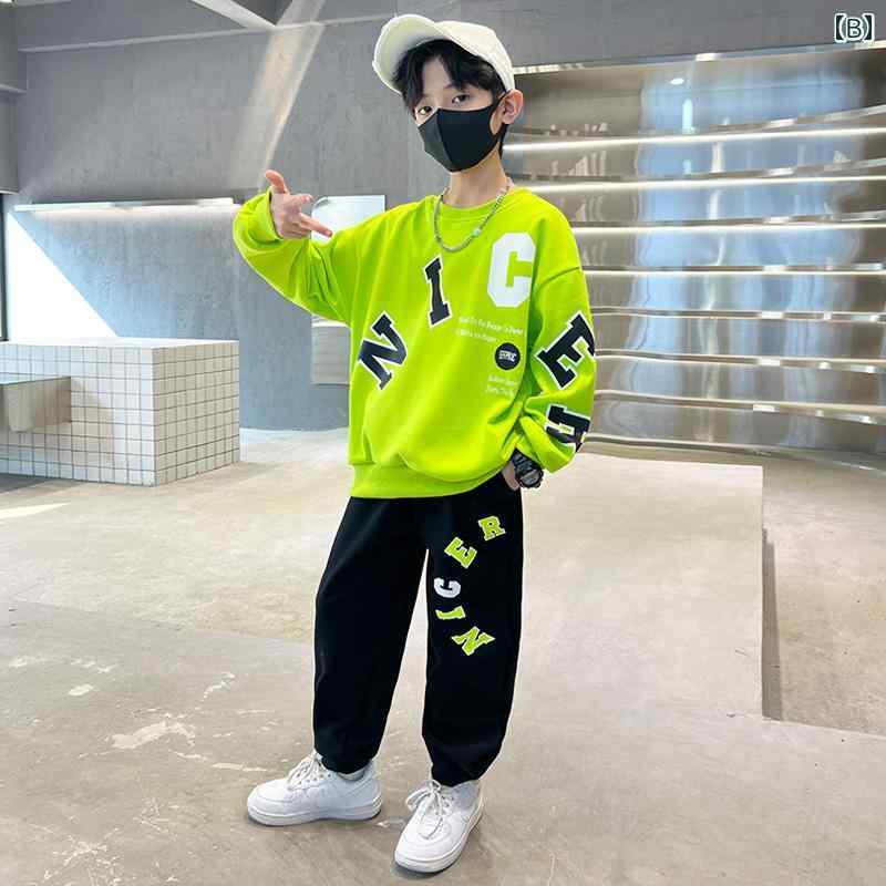 セットアップ 男の子 キッズ ボーイズ スウェット トレーナー 長袖Tシャツ ロンT 長ズボン パンツ 上下セット 綿 ポリエステル スポーツ カジュアル 通学 普段使い 春夏 黒 緑 キャラクター アニメ柄